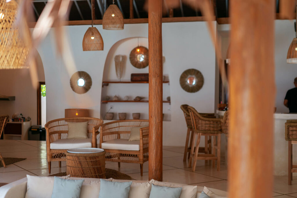 Villa Onu private cinema room is a multipurpose space that is outfitted with an extra-large smart TV, surround sound and cozy seating.